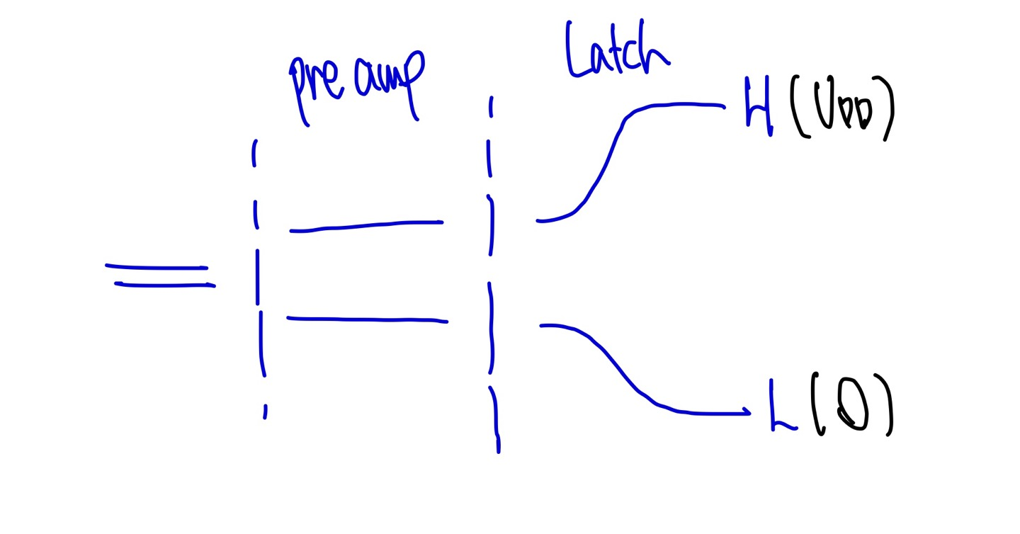 위와 같이 preamp를 통해 starting point를 조절하여 metastability를 낮추고 latch에서 빠르게 증폭하여 출력으로 High 또는 low를 뽑아내는 것입니다.